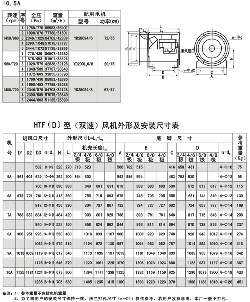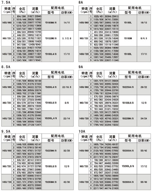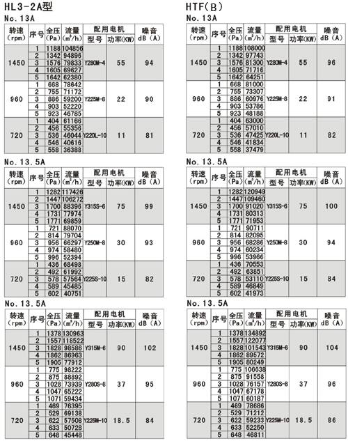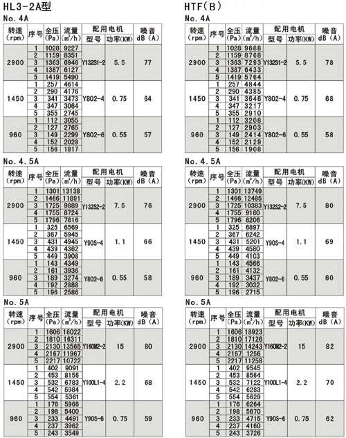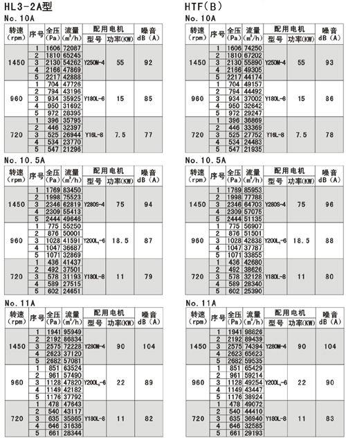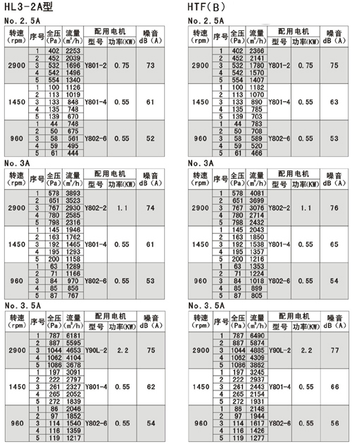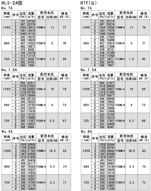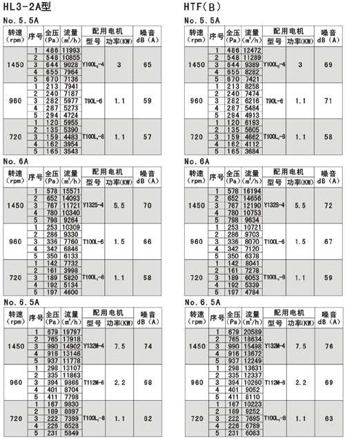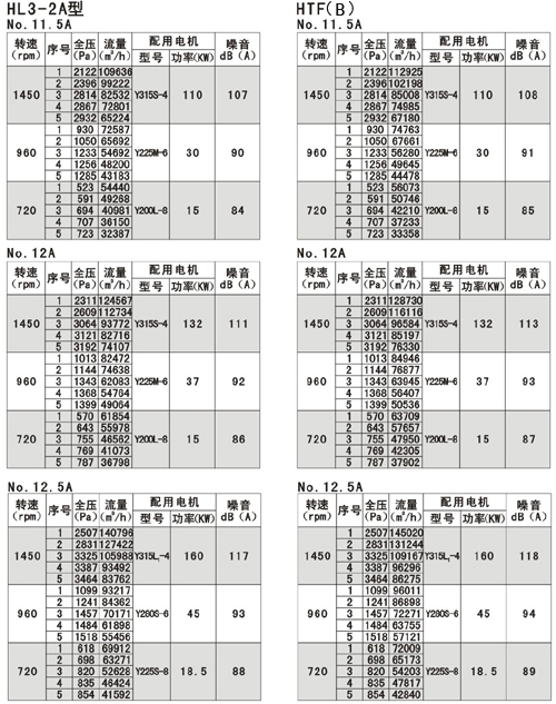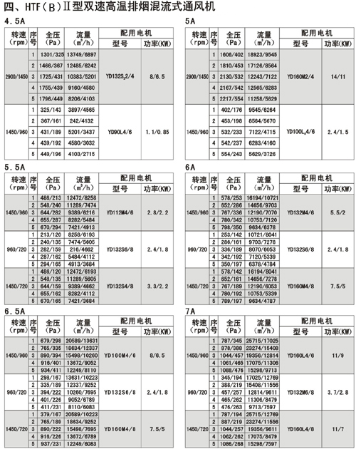 風機的性能在性能表上查閱,表中列出的性能是最高效率范圍內的性能,按流量分為五個特點,選用時按性能表為準,出廠的風機合格品性能在額定流量下全壓值不超過+_5%。性能選用表是標準狀態(tài)下的性能,無論技術文件或定貨要求的性能均按標準狀態(tài)為準,標準狀態(tài)大氣壓=101325pa,t=20相對溫度 =50%空氣狀態(tài),當實際使用條件下與上述不符合時按有關公式進行換算,風機安裝方式可分為立式和臥式,如立式安裝在訂貨中注明,如流量,壓力安裝尺寸等性能參數有特殊要求,公司將為您另行設計生產。HTF(PYHL-14A)系列通風機的流量值為300攝氏度高溫空氣流量值,比平常選用HL3-2A系列風機流量值+?。?%。