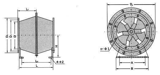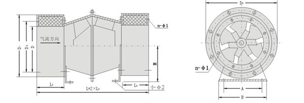 GXF系列風(fēng)機應(yīng)用斜流子午加速設(shè)計方法,采用鼓形或直行風(fēng)筒、錐形輪轂、扭曲翼形葉片結(jié)構(gòu)形式。兼有離心式風(fēng)機壓力系數(shù)較高和軸流式風(fēng)機流量系數(shù)較大的特點,具體有噪聲的是、耗電省、結(jié)構(gòu)緊湊等優(yōu)點,臥式、立式安裝均可。